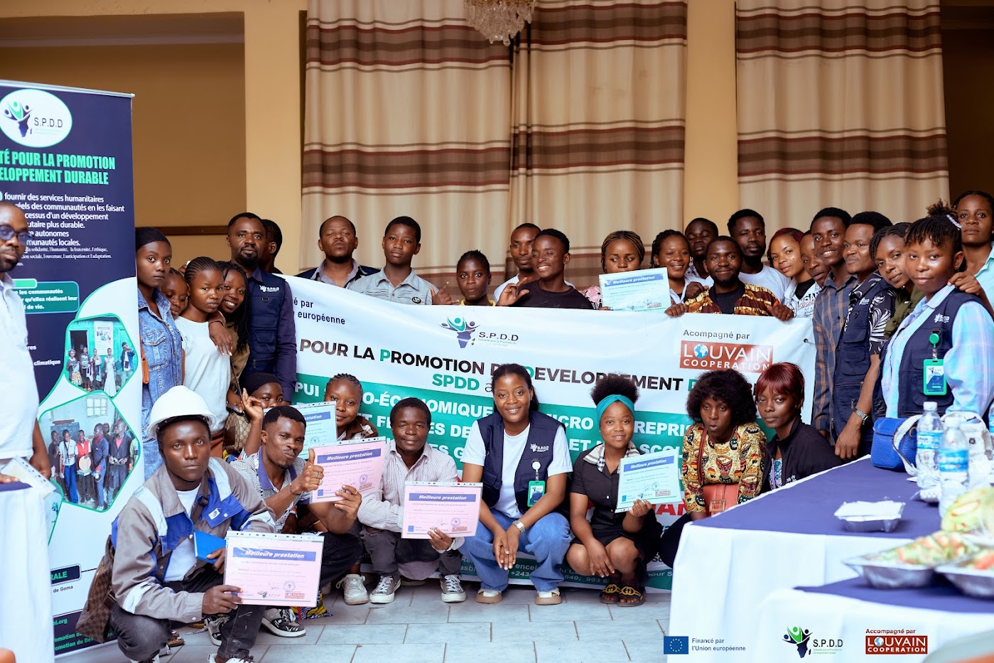 Actuellement, SPDD a signé une convention de partenariat avec Louvain Coopération pour la mise en œuvre du projet : Appui socio-économique aux microentreprises des jeunes garçons, filles et femmes désœuvrés et non scolarisés victimes de la crise des guerres en ville de Goma. « Uchumi Kwa Maendeleo ya Vijana » dans le cadre du programme Faciliter les Initiatives Locales (FIL) en RDC de l’Union Européenne. Ce projet accompagne 120 jeunes dans différentes filières de formation professionnelle, parmi eux 60% du sexe féminin et 40% du sexe masculin.